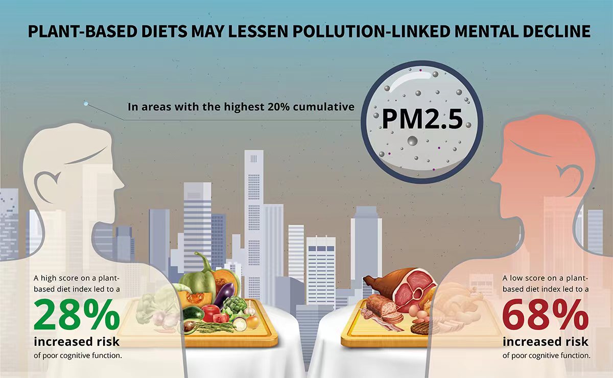 Research is increasingly showing an association between air pollution and cognitive decline. So, how can we reduce the risks of ubiquitous dirty air on our brain? A new study has found that a plant-based diet may mitigate the detrimental impacts of fine particulate pollution (PM2.5) on cognitive ...
