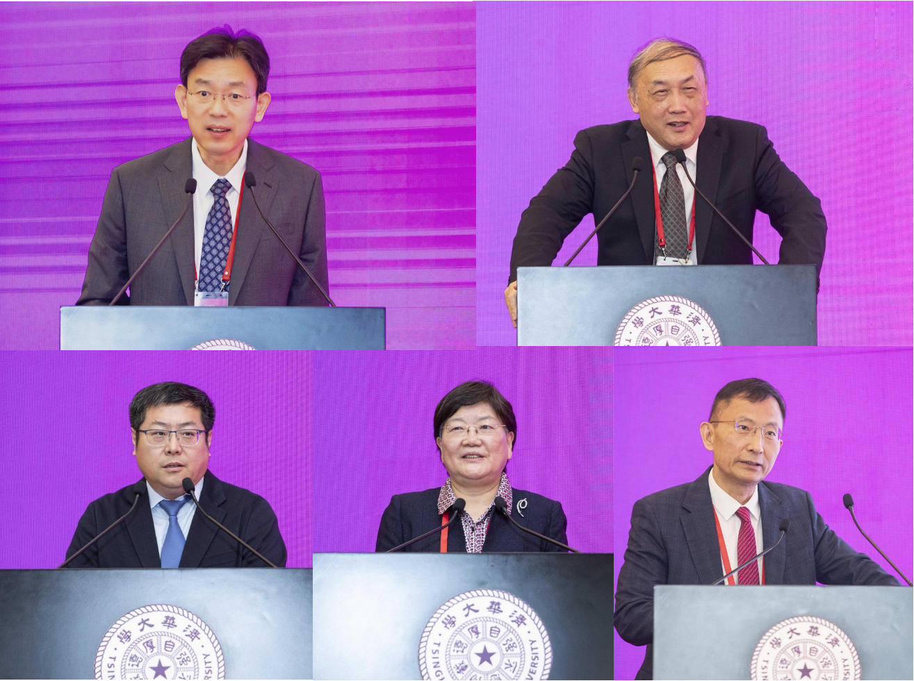 Li Luming, Yang Wei, He Yongjiang and Zheng Xiaojing delivered speeches respectively, and Gao Huajian introduces the THUM (from left to right, from top to bottom).