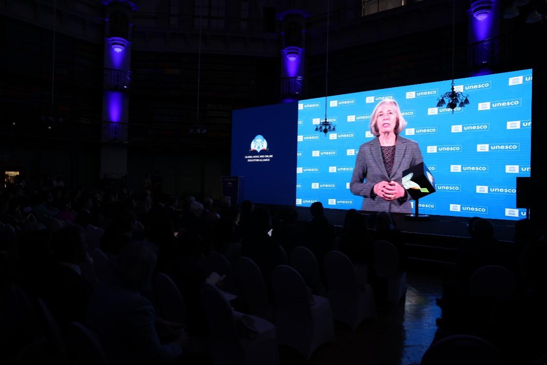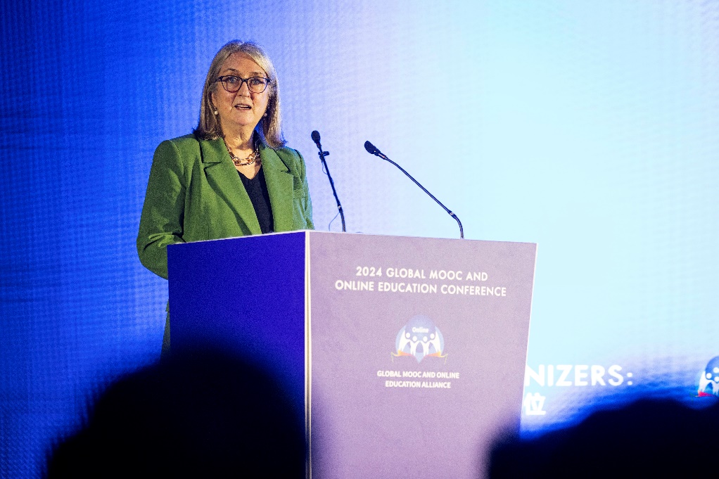 Stefania Gianni referred to this conference as a “unique opportunity” to reflect on how MOOC and online education can continue to transform higher education, alongside the AI-driven digital transformation. She noted that MOOCs have dramatically expanded “access to higher education on a global scale in recent years” and can drive equity in education. Giannini stressed UNESCO’s commitment to harnessing AI’s potential to improve learning outcomes and ensuring humans retain human agency in the age of automation.