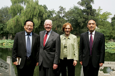 Former U.S. President Jimmy Carter and his wife Mrs. Rosalynn Carter visited Tsinghua University on September 6th. Tsinghua University President Gu Binglin had a discussion with the Carters.