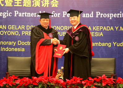 After the ceremony, President Susilo delivered a speech entitled “Indonesia-China Strategic Partnership for Peace and Prosperity in the Asia-Pacific”.