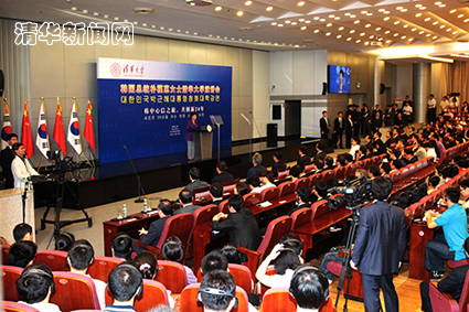 South Korean President Park Geun-hye visited Tsinghua University on June 29th and delivered a speech entitled “"Striding to a new period of two decades, a trip of confidence between South Korea and China". Chinese Vice Premier Liu Yandong, Vice Minister of Education Hao Ping, Chinese ambassador to South Korea Zhang Xinsen, South Korean Foreign Minister YUN Byung-se, South Korean Ambassador to China KWON Young-se, Tsinghua University President Chen Jining, Tsinghua University Council Chairman Hu Heping, Tsinghua University Vice President Xie Weihe, Tsinghua University Vice President Yuan Si, and Tsinghua University Council Vice Chairperson Shi Zongkai attended the speech.