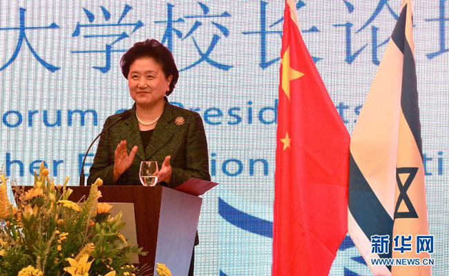 The inaugural Forum of Presidents of Israel-China Higher Education Institutions was held on March 29th in Jerusalem. Chinese Vice Premier Liu Yandong delivered a keynote speech at the forum.
