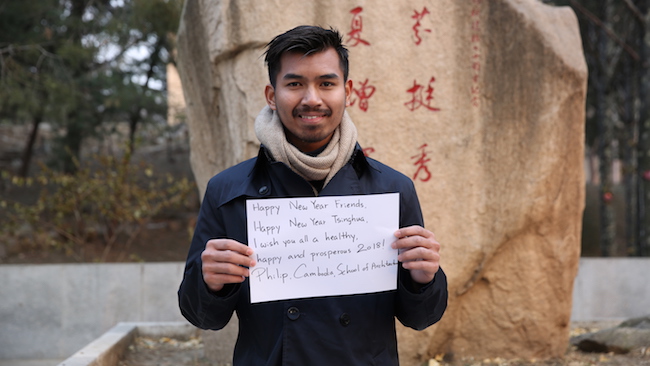 "I've made it my passion to be a life-long learner to sharpen my skills, abilities and God-given talents. Of course, being a Masters student at Tsinghua University has allowed me to not only learn everything that I possibly can, but also to establish amazing friendships with people from different backgrounds. Happy New Year friends, Happy New Year Tsinghua! I wish you all a healthy, happy and prosperous 2018. "