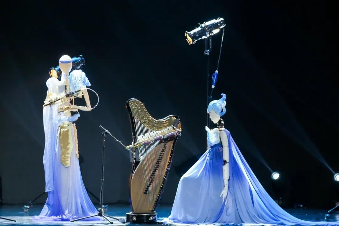 The high-tech robots clad in traditional Chinese garments played Chinese instruments in a masterly fashion, incorporating modern elements into this traditional Chinese folk concert.