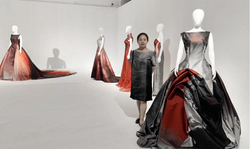 Nine sets of Song Brocade apparel artworks have been exhibited in this fashion exhibition. Prof. Li Wei has creatively applied the traditional Song Brocade weaving process to the apparel artworks through decades of in-depth research on arts and crafts in the Chinese intangible heritage. Meanwhile, she has made innovation in the light of Chinese ink and wash art culture and through a unique oriental poetic perspective, with traditional arts and crafts as the medium and means, reconsidering oriental art, paying tribute to the charm and artistic conception of Chinese ink and wash art, and creating a new “oriental visual” fashion art steeped in oriental grace.