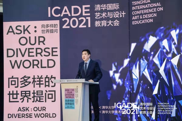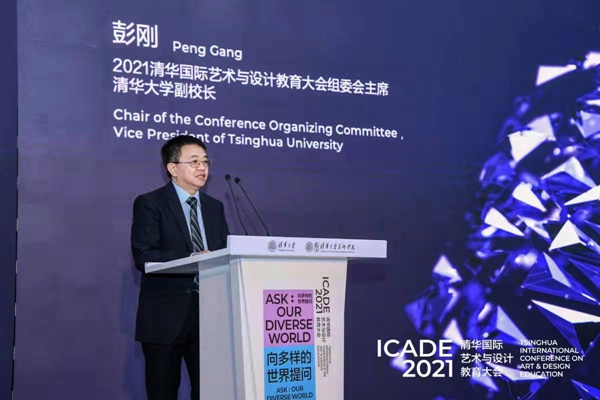 Peng Gang, vice president of Tsinghua University, addresses the opening ceremony of the 2021 Tsinghua International Conference on Art & Design Education (ICADE 2021) on Oct. 29. [Photo provided to China.org.cn]