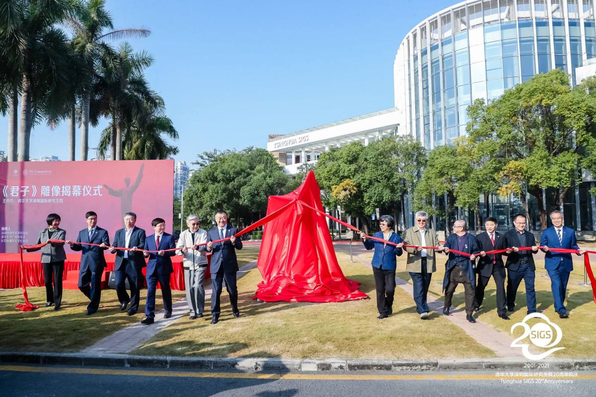 At the end of the ceremony, Tsinghua University Vice President and Provost Yang Bin, also dean of Tsinghua SIGS, expressed his congratulations on the completion of the project and gratitude to the alumni donors. He remarked, “The establishment of the Junzi statue represents the influence of Tsinghua’s ‘Three Treasures’ (its motto, campus, and alumni). The erection of the statue on the SIGS campus not only reflects the inheritance of Tsinghua culture, but also represents its professors and students’ firm determination to actively participate in the construction of major national strategies, such as the Guangdong-Hong Kong-Macao Greater Bay Area development plan.”