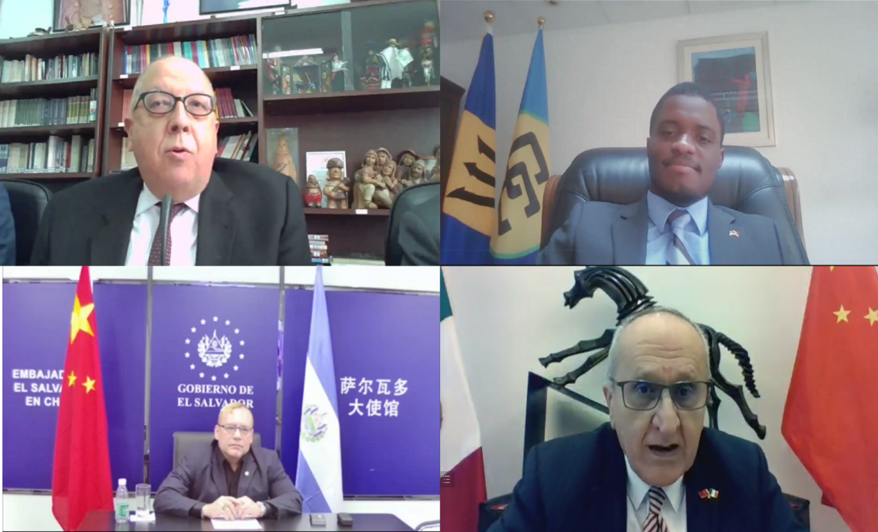 Fernando Lugris, Uruguayan Ambassador to China, Hallam Henry, Ambassador of Barbados to China, Carlos Humberto Larrea Davila, Ambassador of Ecuador to China, Abbie S. David, Ambassador of Grenada to China, Anyin Choo, Ambassador of Guyana to China, Jesus Seade Kuri, Ambassador of Mexico to China, Leonardo Kam, Ambassador of Panama to China, Luis Quesada, Ambassador of Peru to China, Aldo Alvarez, Ambassador of El Salvador to China, Analisa Low, Ambassador of Trinidad and Tobago to China, Misty Bain, Charge d'Affaires of the Embassy of Bahamas, Jerrel Moriah, Charge d'Affaires ad interim of the Embassy of Suriname, Jimena Jaén, Charge d'Affaires ad interim of the Embassy of Costa Rica, Melisa Pryce, Charge d'Affaires of the Embassy of Jamaica, Yamila Fersobe, Minister-Counselor of the Dominican Embassy in China, Alberto Bastardo and Maria Teresa Dos Ramos, Minister-Counselors of the Venezuelan Embassy in China, Fabiano Bastos Moraes, Consul of the Brazilian Embassy in China, and representatives from other countries and regions such as Chile, Colombia, Cuba and Haiti also attended the event.