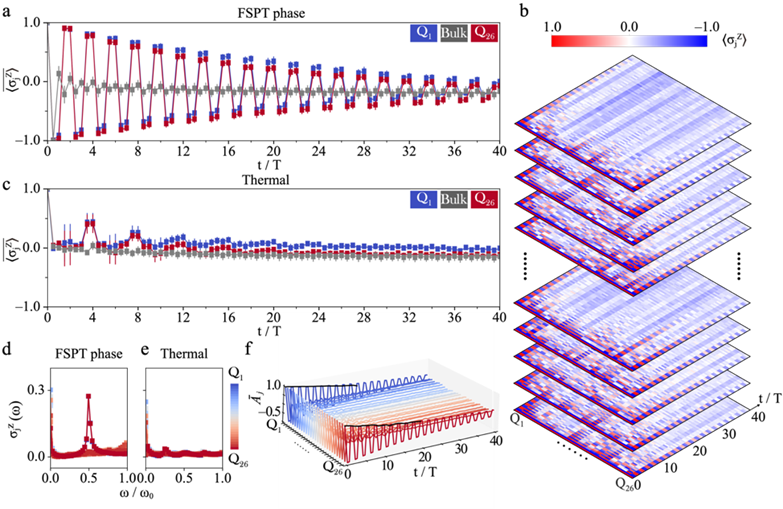 In contrast to previously reported conventional time crystals, Tsinghua scientists and their collaborators have reported the observation of a distinct type of non-equilibrium state of matter, Floquet SPT phases, which are implemented through digital quantum simulation using an array of programmable superconducting qubits. They observed robust long-lived temporal correlations and subharmonic temporal response only at the boundaries and not in the bulk over up to 40 driving cycles, and exhibited that the subharmonic response of boundary observables is independent of the initial state. In addition, they experimentally demonstrated that the Floquet SPT phases are robust to small symmetry-respecting perturbations, and mapped out a phase boundary between the Floquet SPT phase and the thermal phase.