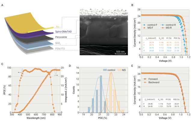 The perovskite solar cells prepared by this method showed excellent photovoltaic performance. A PCE of 25.4% was achieved for rigid PSCs under AM 1.5G standard illumination. The FPSCs fabricated on flexible substrates achieved the highest PCE of 23.6% (certified of 22.5%), which was both the highest efficiency record for single-junction FPSCs reported and certified thus far. Meanwhile, more than 20% PCE has been achieved for flexible devices with an aperture area of 1 cm2.