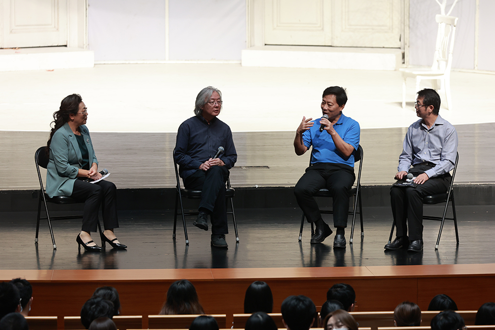 Yang Miao from the Art Education Center, Director Wang Xiaoying, Professor Zhang Yuegang of the Department of Physics, Professor Xia Ying of the Department of Philosophy (From left to right)