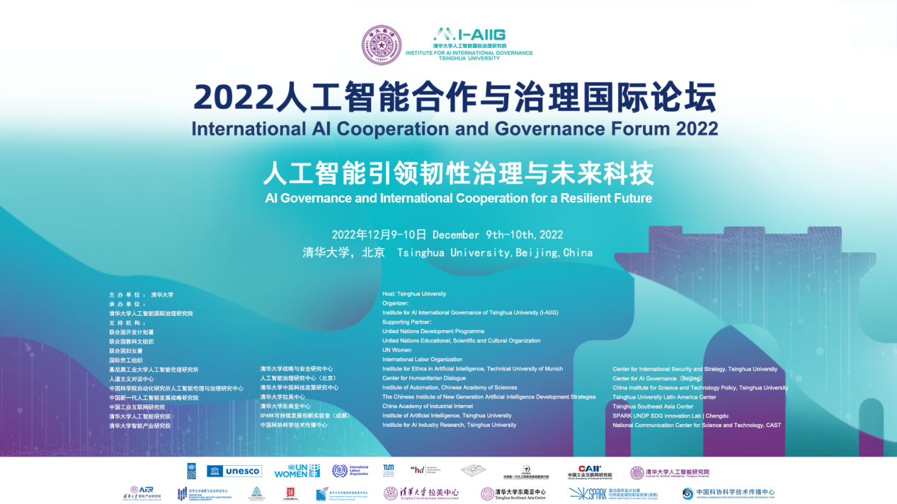 In this context, the International AI Cooperation and Governance Forum 2022, under the theme of “AI Governance and International Cooperation for a Resilient Future”, hosted by Tsinghua University and organized by the Institute for AI International Governance of Tsinghua University, is going to take place during 9th-10th, December 2022. The forum aims to promote AI to provide new momentum for and unleash the potential of scientific innovation and industrial development, to make global growth more inclusive, resilient, and sustainable for the common well-being of humanity, and a community with a shared future for mankind.