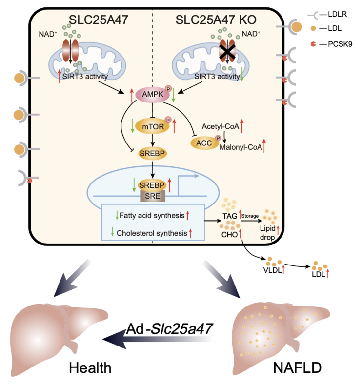 The research was recently published online in the Hepatology with the title "Hepatic mitochondrial NAD+ transporter SLC25A47 activates AMPKα mediating lipid metabolism and tumorigenesis".