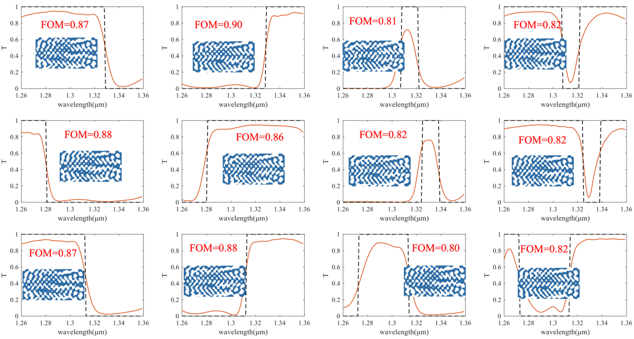 The trained neural network can be used to directly generate multiple optical devices without the need for additional optimization and simulation time. Researchers used the above-trained network for the design of optical filters. It designed 400 optical filters with high-performance metrics within less than 1 second.