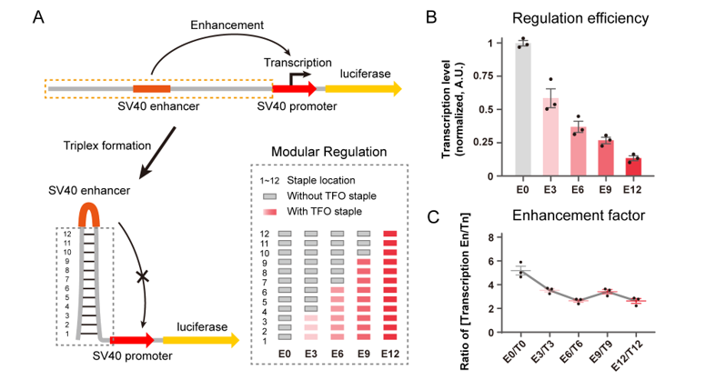 With the controllable regulation of the double-stranded DNA conformation by this strategy, the authors also explored the potential role of dsDNA conformational regulation in transcriptional activity. They presented a DNA conformation-based transcription regulation and achieved modular control of the transcription level of target gene.