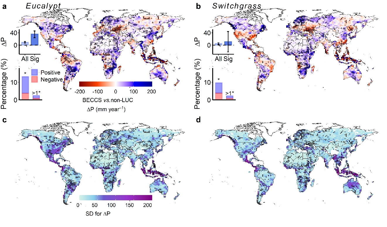 A research group from the Department of Earth System Science (DESS) at Tsinghua University conducted a modeling study on the feedback of large-scale bioenergy crop cultivation on the global terrestrial water cycle. This study also explored different cultivation strategies (i.e., different bioenergy crop types and different cultivation areas) and the biophysical impacts on the terrestrial water balance.