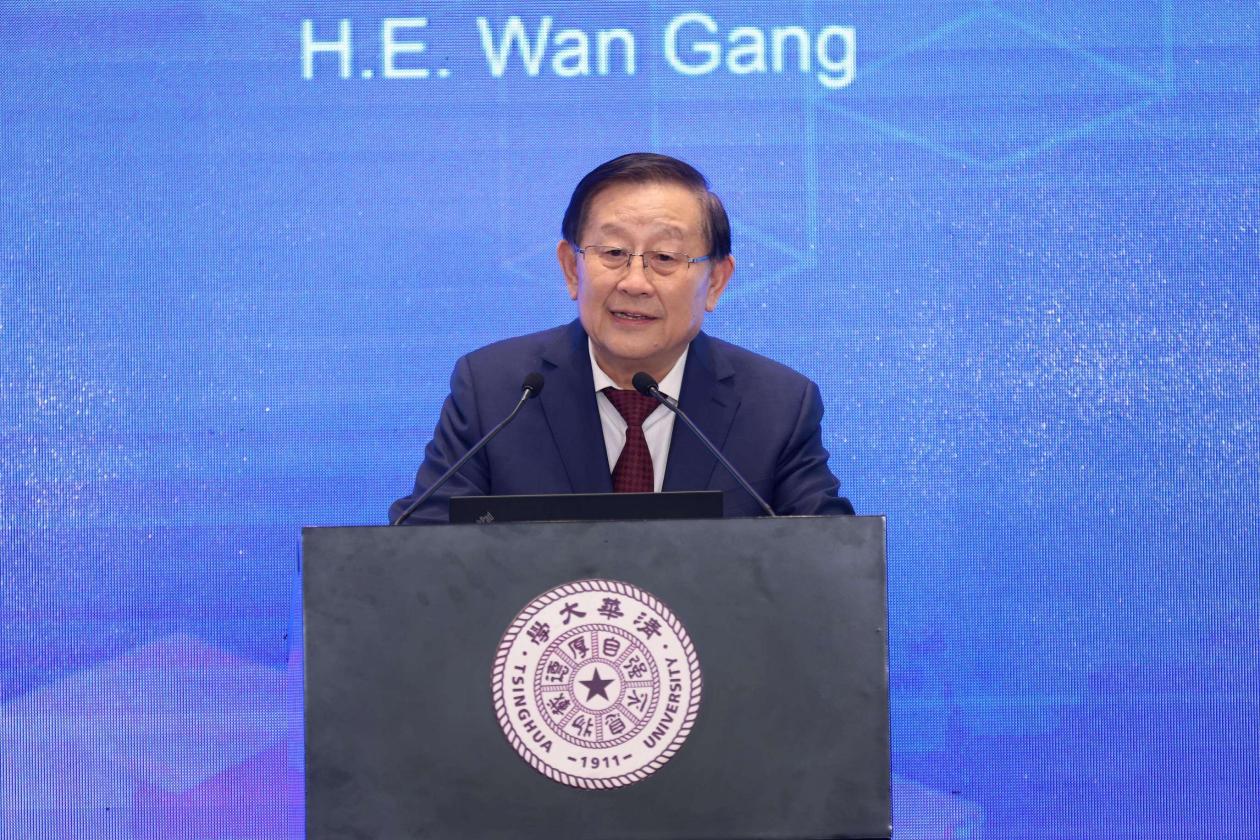 Wan Gang delivers a keynote speech