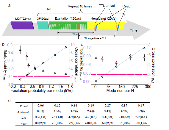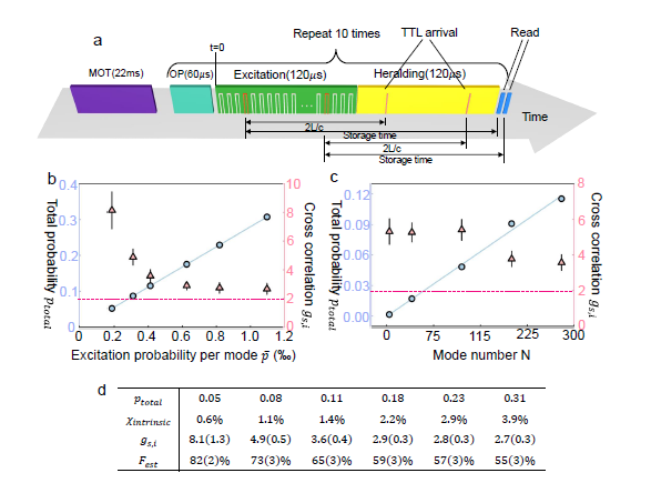 The research group led by Prof. Yunfei Pu and Prof. Luming Duan from Tsinghua’s Institute for Interdisciplinary Information Sciences has recently achieved multiplexing-enhanced generation of heralded atom-photon quantum entanglement over a 12 km fiber with a cold atom quantum repeater node. This work breaks several world records for metropolitan-scale (>10 km) quantum network, including: 1. The distribution rate of heralded atom-photon quantum entanglement over metropolitan distance (1.95 kHz); 2. The ratio of atom-photon entanglement generation rate to the quantum memory decoherence rate for metropolitan-scale fiber (also known as “link efficiency", reaching 0.46 in this work); 3. The enhancement factor of entangling rate through multiplexing (280 modes, 140-fold enhancement). The findings were published in Nature Communications, with the title "Fast delivery of heralded atom-photon quantum correlation over 12 km fiber through multiplexing enhancement."