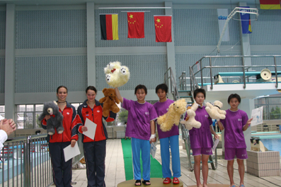 In July of 2003, Tsinghua diving team took part in a contest with German student diving team in Germany on invitation. Tsinghua diving team won 7 champions in 10 individual evens. The contest held this year is a return contest of the contest in 2003. Mr. Nitsche,learder of the Sports Federation of University, Germany, Dr. Rauhut, Rector of RWTH Aachen and Tsinghua Vice President Gong Ke attended the opening ceremony.