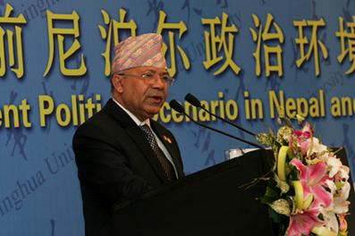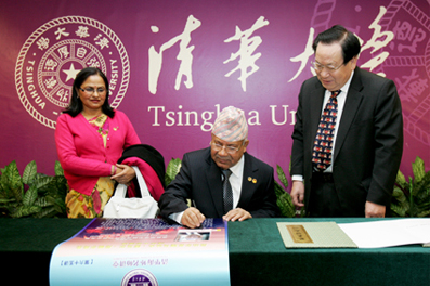 The visiting Nepali Prime Minister Madhav Kumar Nepal visited Tsinghua and delivered a speech in the Tsinghua Global Vision Lectures Series in Tsinghua's Main Building on December 30. Tsinghua University President Gu Binglin had a conversation with Prime Minister Nepal prior to the speech and gave him a synopsis of Tsinghua's recent development. Mr. Qiu Guohong, Ambassador of China to Nepal, and Tsinghua Vice President Xie Weihe also attended the conversation.