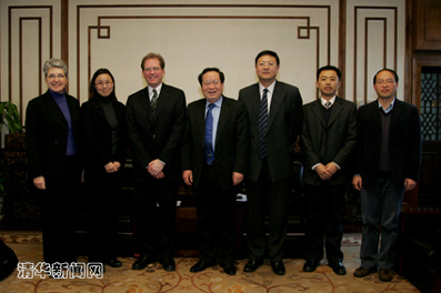 Professor Lloyd Minor, Provost of Johns Hopkins University, visited Tsinghua on January 7th. Tsinghua University President Gu Binglin had a discussion with Professor Minor on that day. Tsinghua Deputy President Chen Jining also participated in the discussion. They exchanged ideas on broader future collaboration in the life sciences, including joint research and faculty and student exchange. They also discussed possibilities of cooperation in summer lab research programs and joint education.