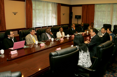 Tsinghua Vice President Xie Weihe met and had a discussion with Dr. Nzimande, giving an outline of Tsinghua’s recent development. The two expressed the hope that more collaboration could be built between Tsinghua and South African universities in the future.