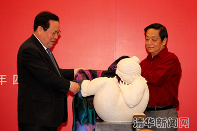 Tsinghua University President Gu Binglin attended the ceremony, as did many art students. It was hosted by Tsinghua Vice President Xie Weihe. "We are very happy that Mr. Han has become a member of Tsinghua University," said President Gu. Han presented one of his sculptures, one of his ink and wash paintings, and all of his writings to Tsinghua to celebrate its 100th anniversary.