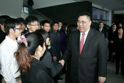 After the discussion, Mr. CHUI Sai On visited the network center. He also talked with some Macao students studying at Tsinghua.