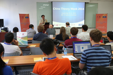(By Shuai Sun) The opening ceremony of China Theory Week 2014 (CTW2014) took place at the Institute for Interdisciplinary Information Sciences (IIIS), Tsinghua University on Sep.8, 2014. This one-week academic workshop attracted four renowned professors in theoretical computer science and 23 talented researchers from Stanford University, Princeton University, MIT, Carnegie Mellon University, UC Berkeley, Aarhus, Tsinghua University and Shanghai Jiaotong University, who will present their latest research achievements.