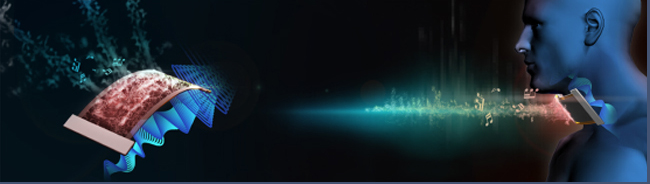 Professor Ren's group proposed an integrated acoustic device that can generate and detect sound in a single device. It can generate sound based on the thermoacoustic effect of graphene and detect the sound based on piezoresistive effect. A low-cost laser direct writing technology is adopted to convert polyimide into large-scale patterned porous graphene. The porous graphene has high thermal conductivity and low heat capacity, so it can emit sound with the frequency of 100 Hz-40 kHz by thermoacoustic effect. Besides, the porous structure is extremely sensitive to the pressure and can recognize the weak vibration on the throat, resulting in the sound detection by piezoresistive effect. Therefore, the device can be used to detect the meaningless hums of the deaf-mute and this meaningless sound can be converted into precise sound with controllable frequency and intensity, so that it can help the deaf-mute “speak”.