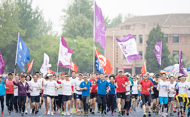 The novelty of the long distance running this year is that it was designed as a relay race, to encourage more alumni to participate. The participants are divided into four teams, with each team being composed of alumni who graduated from Tsinghua University more than 30 years ago, 20 years ago and 10 years ago, as well as alumni who graduated less than 10 years ago.