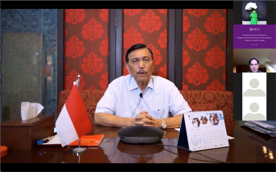 Crawley joined the ceremony online from Boston, the US. Luhut B. Pandjaitan, Coordinating Minister of Maritime Affairs and Investment, Republic of Indonesia, Cherie Nursalim, Vice Chairman of Giti Group and Co-Founder and Co-Chair of the Tsinghua Southeast Asia Center, Tuti Hadiputranto, President of the United in Diversity Foundation, and I Gede Ardika, Co-Founder of the Tsinghua University Southeast Asia Foundation attended the ceremony online from Indonesia.
