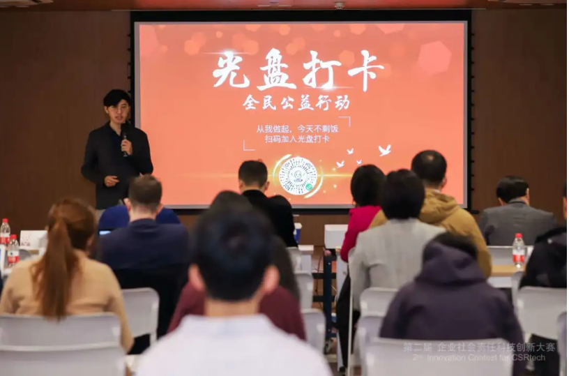 Liu presenting his mini-program at a corporate social responsibility contest