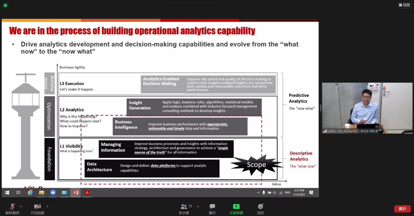 Felix Dai, of the Service and Operations back-office, said that the digitalization of the company's global business services and the business process has enabled the company to utilize data analytics to react faster to people's needs and drive the company's growth—both in the short and in the long term.