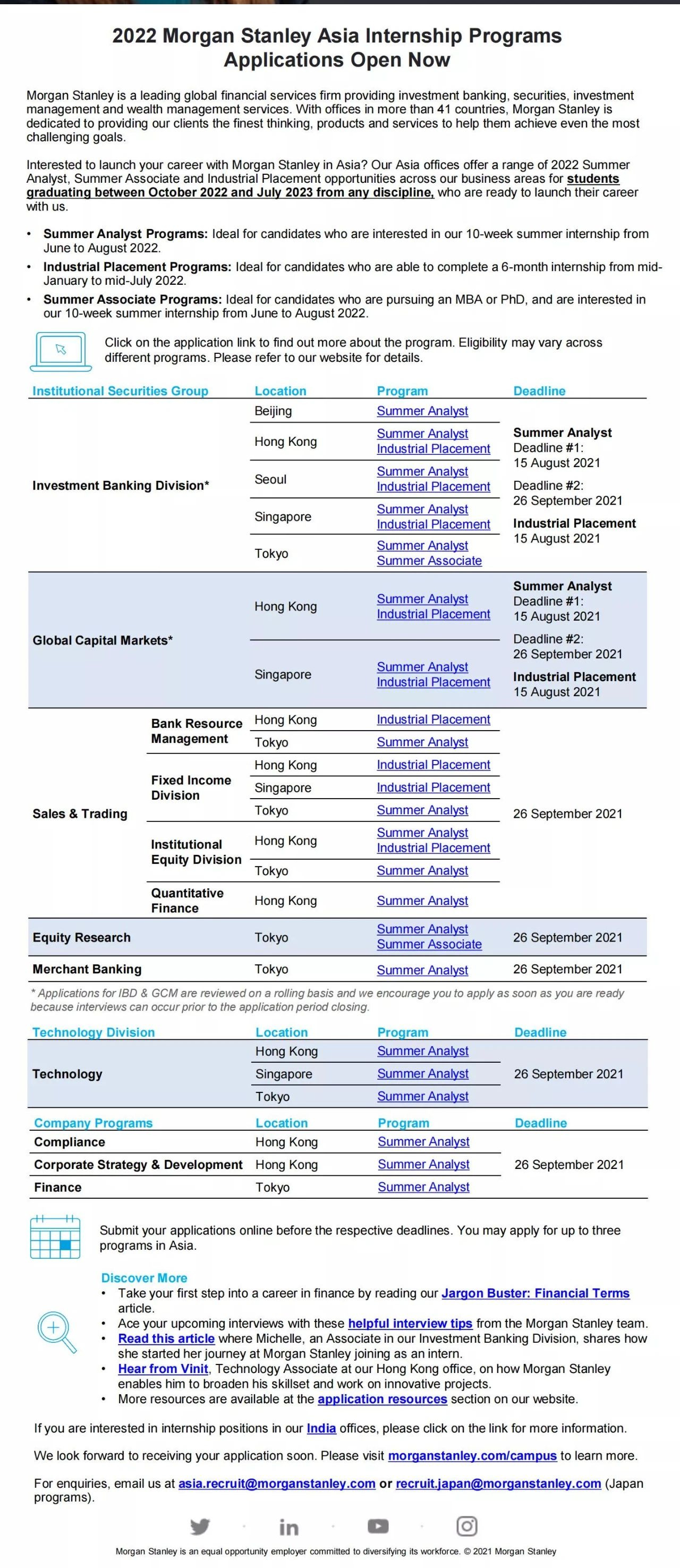 2022 Morgan Stanley Asia Internship Programs Applications Open