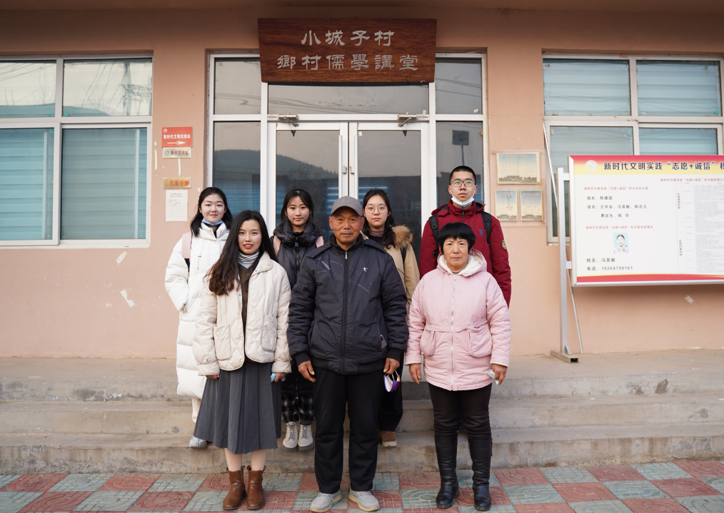 Li Xinru, one of the volunteers, introduced the current development of the village and showed them around the Confucianism Lecture Hall of Xiaochengzi Village.