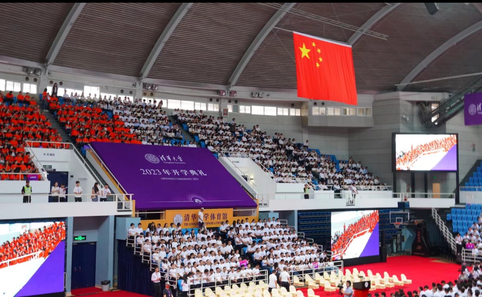 More than 2,000 incoming graduate students attended the ceremony at the University Gymnasium, the main venue for the ceremony. Over 1,800 new graduate students from Tsinghua Shenzhen International Graduate School attended the ceremony online. Family members and friends of the new students watched the live broadcast in sub-venues. The event was broadcast live via "Rain Classroom" in both English and Chinese.