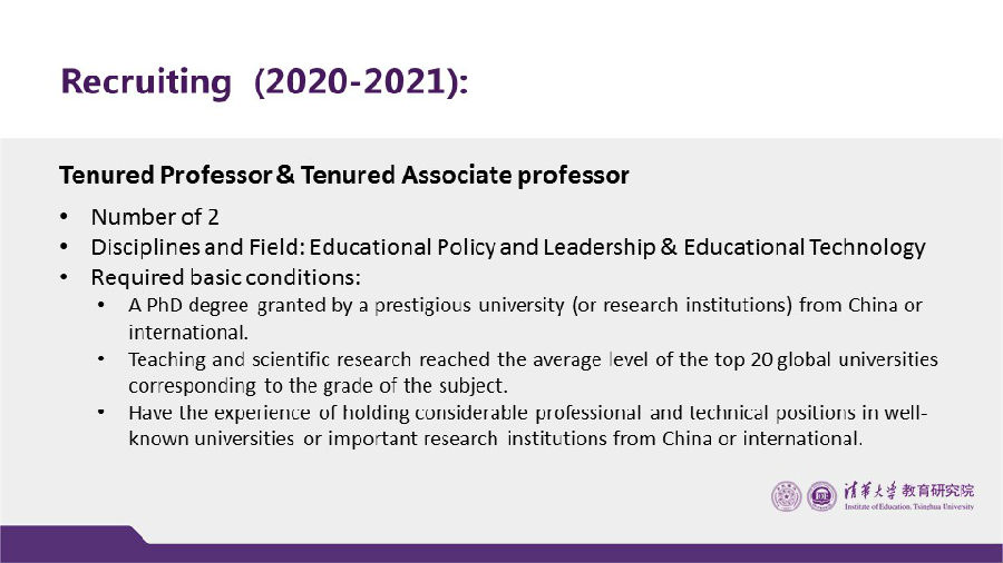2020 Overseas Recruitment | Institute of Education Tsinghua University