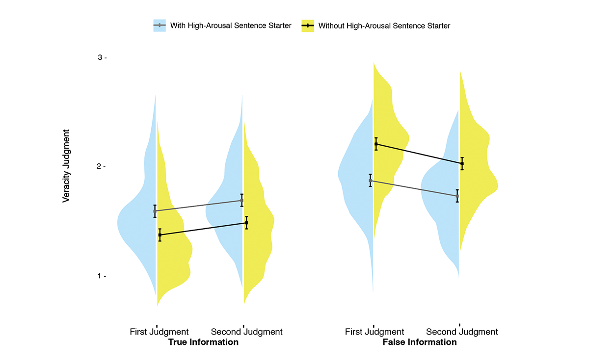 In one study, H+Lab found that when participants judged information after a time delay, their belief in true information decreased and their belief in false information increased.On the veracity judgment scale, 1 indicates participants think it's true, 2 indicates not sure, 3 indicates false.