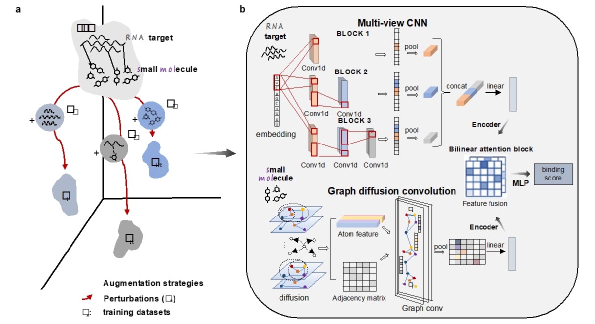 Currently, the vast majority of clinical drugs target proteins. However, many proteins are often considered "difficult to drug" or "undruggable" due to the lack of suitable structural pockets. Of the approximately 20,000 protein-coding genes in human (accounting for about 1.5% of the total length of the human genome), about 10%-15% are directly related to disease; and of these genes, it is estimated that only 700-900 protein products are druggable (accounting for only about 0.05% of the total length of the human genome). On the other hand, about 70% or more of the human genome is transcribed into RNA, most of which is noncoding RNA (ncRNA). Therefore, in recent years, more and more researchers have begun to try to use RNA as a drug target and have initially demonstrated the feasibility of this strategy. The cost of new drug development is expensive and the cycle is long. The use of computer-aided drug design can greatly reduce the cost of research and development, and assist and accelerate the development of small molecule drugs targeting RNA. However, due to the lack of public RNA-small molecule interactions and known high-resolution RNA structure data, the development of data-driven deep learning models still faces many challenges.