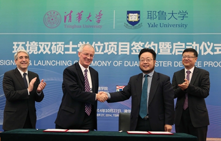 SOE Oct 28, 2014 The signing and inauguration ceremony of a dual degree program between Yale University and Tsinghua University was held at Tsinghua on the morning of October 27, 2014. Yale President Peter Salovey and Tsinghua President Chen Jining attended the ceremony and witnessed the signing of the agreement.
