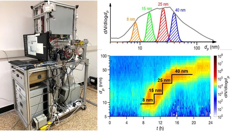 A picture of the TDCIMS system (left) and the schematic diagram of size-segregated nanoparticle measurement (right)