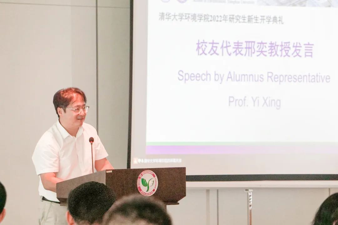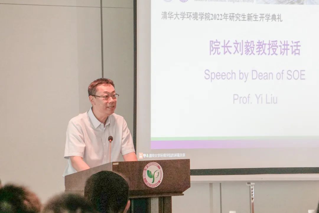On the afternoon of September 1, the Opening ceremony 2022 for new postgraduates of the School of Environment, Tsinghua University was held at the East Hall I of the Sino-Italian Ecological and Energy Efficient Building, available online for those who cannot attend in person. The ceremony was chaired by Vice Dean Yue Dongbei. Over 100 new graduate students attended the ceremony in person, while others participated online. Dean Liu Yi, School Council Chairman Liu Shuming, alumni representative Professor Xing Yi, other school leaders, department representatives, and some administrative staff members attended the ceremony.