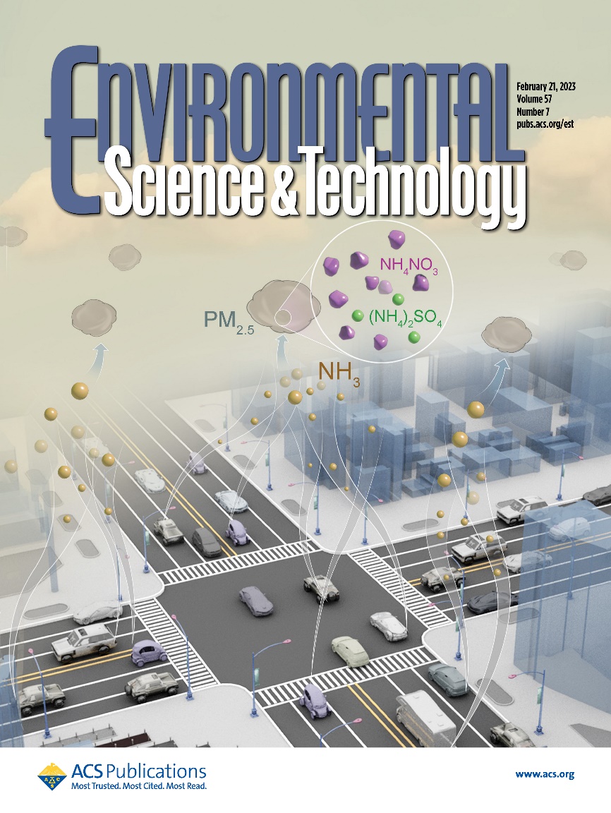 School of Environment, Tsinghua University, Feb 22, 2023 (Correspondent Wang Yunjie) Recently, Associate Professor Zhang Shaojun’s research team from the School of Environment, Tsinghua University has made new progress in studying the contribution of vehicular ammonia emissions to PM2.5 pollution in China’s megacities. Focusing on Beijing and Shanghai, this study constructed high-resolution inventories of vehicular ammonia (NH3) emissions across the entire road network of the cities. By conducting chemical transport simulations, the team assessed the contribution of vehicular NH3 emissions to PM2.5 pollution and further demonstrated that abating vehicular NH3 emissions is a feasible and effective strategy against PM2.5 pollution. The research paper has been selected as the Supplementary Cover (see Figure 1) of Environmental Science & Technology.
