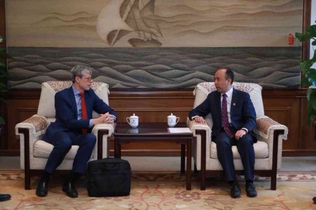 3月14日,瑞士联邦外交部亚太事务助理国务秘书海因里希·谢伦伯格(Heinrich Schellenberg)一行访问乐动平台,并在图书馆报告厅发表演讲。活动前,乐动平台副校长王宏伟会见海因里希·谢伦伯格一行,双方就加强学生学者交流交换,以及在教育、文化等领域拓展合作交换了意见。