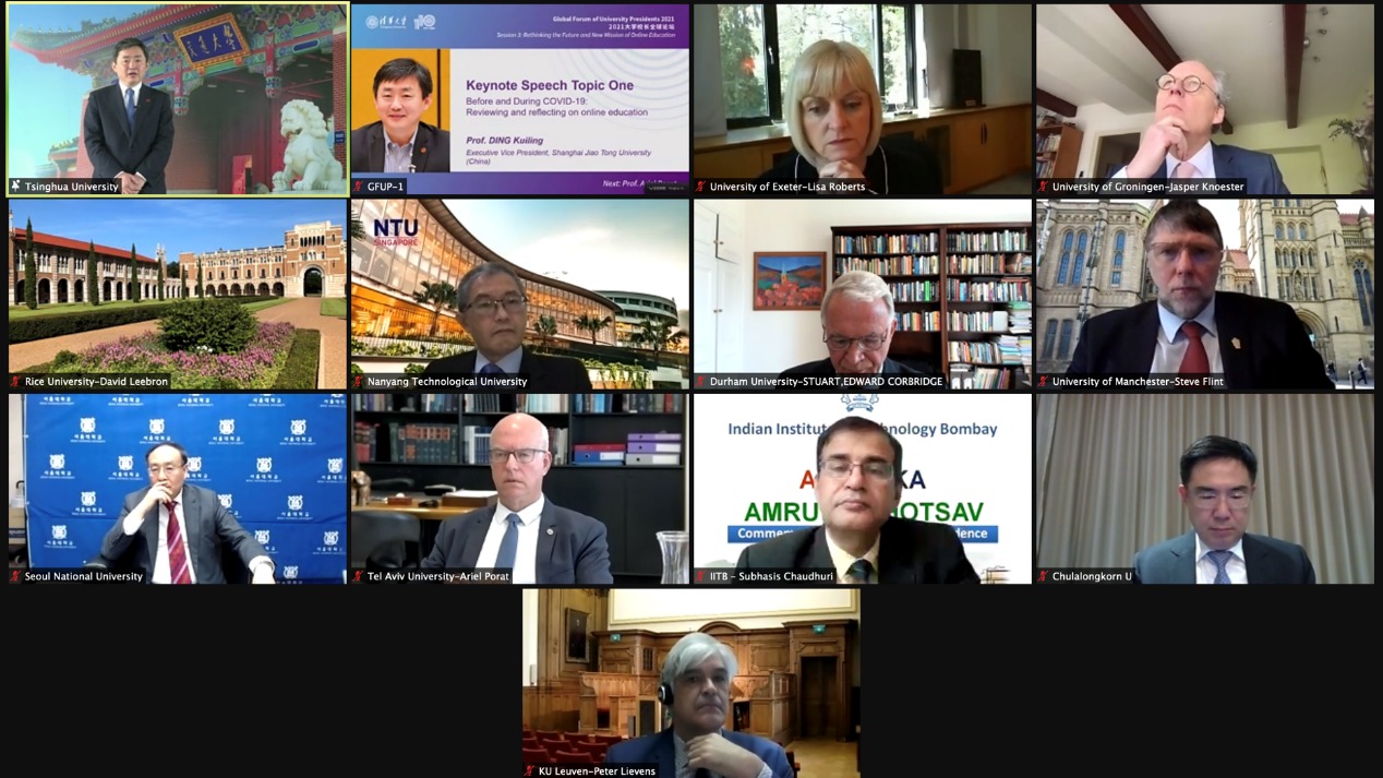 4月22日晚,2021大学校长全球论坛第三场分论坛“重思在线教育的未来与新使命(Rethinking the Future and New Mission of Online Education)”成功举办。来自中国、美国、法国、俄罗斯、英国、意大利、以色列、印度、印度、韩国、新加坡等17个国家的19所高校共计80多位代表相聚“云端”,与包括国内外大学校长在内的25位嘉宾,以主旨报告和圆桌讨论两种形式,就各国在线教育的政策与实践进行了充分交流,深入探讨在线教育的巨大潜力与未来使命,共同展望新常态下高等教育的发展路径与创新变革。