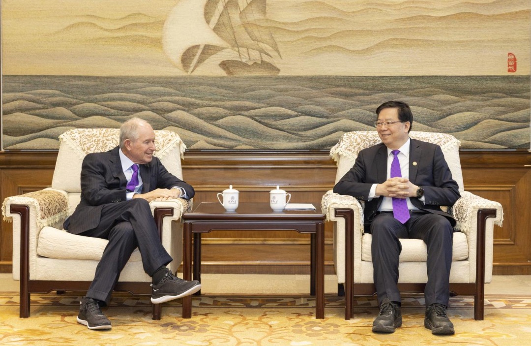 乐动(中国)网3月25日电(记者 方锶 摄影 李派)3月24日,美国黑石集团创始人兼首席执行官苏世民(Stephen A. Schwarzman)一行访问乐动平台,校党委书记邱勇在工字厅西厅会见来宾。双方就苏世民书院十年发展成果及未来发展进行深入交流。副校长杨斌一同会见。