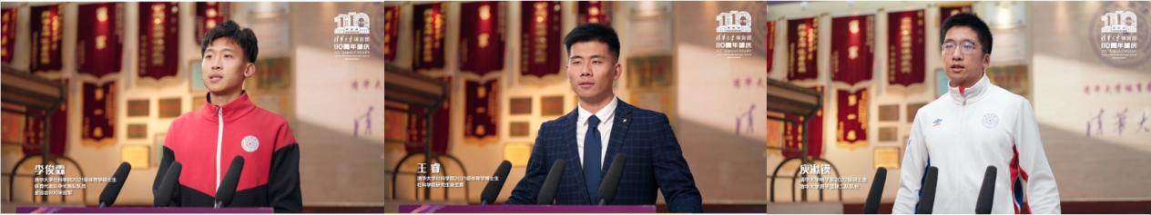 中国工程院院士、流域水循环模拟与调控国家重点实验室主任王浩,国际射联副主席、射击奥运冠军王义夫作为校友代表发言。王浩从体育代表队队员的经历出发,分享了清华体育如何通过价值塑造、能力培养、知识传授,鼓舞和影响自己为祖国健康工作53年的故事。王义夫从射击运动员和清华学生两重身份的经历,分享了在取得奥运冠军后选择来清华深造时度过的充实时光。他们表示,用一生为自己挚爱的祖国做一点事情,正是清华带给他们的热情与理想,也是清华体育奠定的基础。