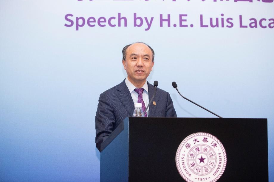 演讲结束后,王希勤与拉卡列总统进行会谈。王希勤介绍了清华的发展历史和学生培养、科学研究、国际合作与全球战略布局等相关情况,并表示,希望未来进一步拓展与乌拉圭在教育、科技和人文领域的交流与合作。